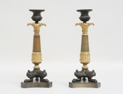 Frankrike 1800-talets mitt, förgylld och mörkpatinerad brons, fotavslut i form av lejontassar, höjd 28,5 (patineringen med slitage)