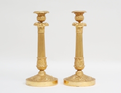 Frankrike tidigt 1900-tal, förgylld brons, rund sockel, reliefdekor av blad och kannelyr, höjd 28