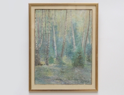 akvarell, solbelyst björkdunge, signerad H af Klint samt även signerad atergo, dagermått 29,5x22, rammått 35x27, historik: säljarens farfar var stadstjänsteman Helsingborg. Han hade ett stort engagemang i stadens kulturliv, där han umgicks i kretsen bland konstnärer och intellektuella, Auktionens målning inköptes sannolikt 1932-1934 då Hilma bodde i Helsingborg, sedan i arv inom familjen, Auktionskammaren tackar fil. dr Johan af Klint för information och katalogisering av detta verk