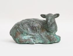 skulptur i form av liggande får, patinerad brons, signerad, höjd 8, bredd 13