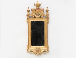 träskuren delvis genombruten dekor, girlanger och urnor, förgylld med bladguld och slagmetall, senare delat glas, 88x35 (smärre ytslitage)