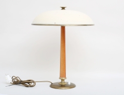 Bertil Brisborg eller Erik Tidstrand, NK 1930/40-tal, modellnummer 30246, mässing, skaft i trä, lackerad skärm, ursprungligt originalskick, höjd 48 (skärmen med smärre mistor i lacken)