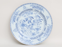 Qianlong 1736-1795, blåvit underglasyrdekorav bl a växter och träd, diameter 32