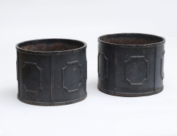 1930/40-tal, bemålat gjutjärn, oidentifierad formgivare Sverige, avdelade fält med rektangulär ramdekor i relief, höjd 30, diameter 40 (rostanlupna)