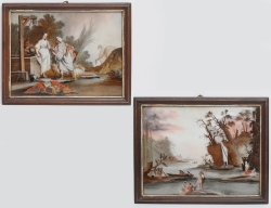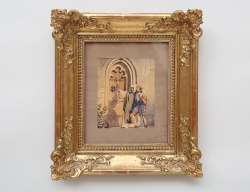 Italien 1700-talets senare del, exotiska motiv, träbakstycke fäst med trästift, samtida ram och upphängninsögla i mässing, 30x23, rammått 35x28
