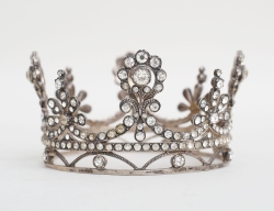 Miramar Geneve, mekanisk, fungerar vid katalogiseringstillfället, syntetiska vita stenar fattade i silver, fjädrande lock över urtavlan, fjädrande stelt armband med säkerhetskedja, bruttovikt 23,02 gram