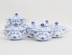 6 buljongkoppar med lock och fat, helblond, 1:a sortering, modellnummer 1228, 1142-1228, 764-1228, höjd 6,5