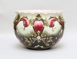 Julius Dressler Österrike, majolika, signerad, stor modell, höjd 27,5, diameter 35 (mynningen med spricka samt glasyrslitage utmed)