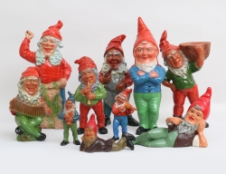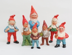 varav 3 stycken 1900-talets första hälft, övriga senare, bemålat lergods, en etikettmärkt Heissner, höjd 12-40