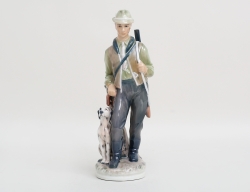 figurin jägare med hund, nummer 1373, porslin med underglasyrdekor, höjd 25
