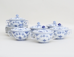 6 buljongkoppar med lock och fat, helblond, 1:a sortering, modellnummer 1228, 1142-1228, 764-1228, höjd 6,5