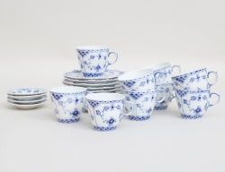 Royal Copenhagen, halvblond, 8 mattallrikar, 8 djupa tallrikar, 8 förrättstallrikar, 6 assietter, litet uppläggningsfat - 1:a sortering, 6 mindre assietter, uppläggningsfat - 2:a sortering, diameter 15,5-26 (38)