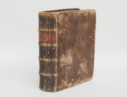 Gamla och Nya Testamentet, biskop J. G. Gezelius, innehåller kopparstick, pergamentband, ej genomgångna, 38x27 (skador)
