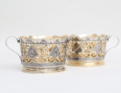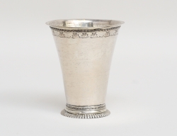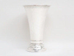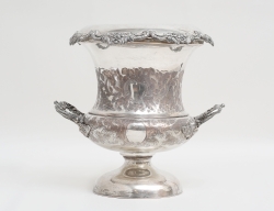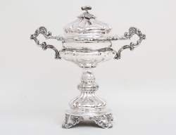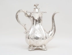 Tyskland, nyrokoko 1800-talets andra hälft, , reliefdekor av rocailler och akantus, graverat släktvapen, vikt 1050 gram, höjd 24,5, bredd 48x23