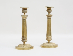 Frankrike tidigt 1900-tal, förgylld brons, rund sockel, reliefdekor av blad och kannelyr, höjd 28