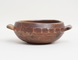 svarvad fasetterat liv med två handtag, spår av röd originalmålning, höjd 8, diameter 17 (spricka)