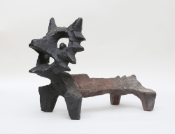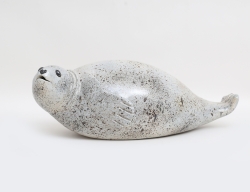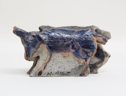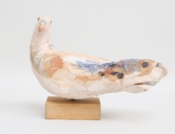 skulptur i form av liggande naken kvinna, terrakotta, vitglaserad sockel, Höganäs, signerad, höjd 11, bredd 22x11