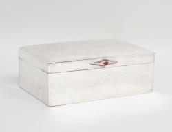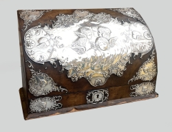 Gustaf Möllenborg Stockholm 1847, reliefdekor av rocailler och akantus, ovansida med skinn, undersida grön sammet, 14,5x9,5