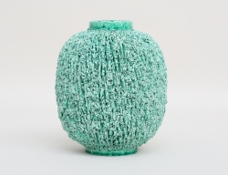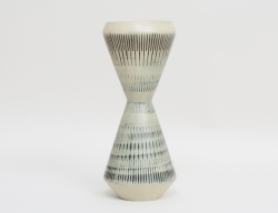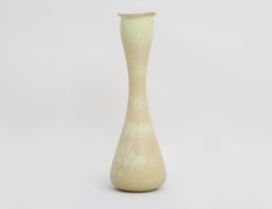 vas stengods, harpälsglasyr i gulgröna toner, timglasformad, signerad, höjd 31, diameter 10 (glasyren med sprickor från tillverkningen)