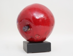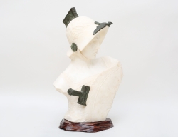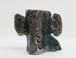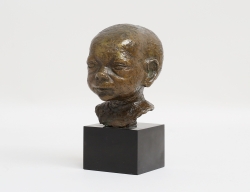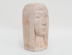 skulptur i form av kvinnohuvud, terrakotta, signerad, höjd 16, bok medföljer