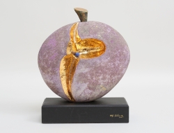 skulptur "I speglarnas sal", vit marmor, basalt, lövträ samt förgyllning, signerad, höjd 35, bredd 40x30