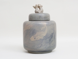 burk med lock, glaserat stengods, egen verkstad Tobo, signerad, höjd 14