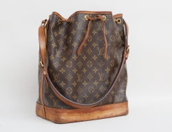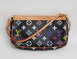 axelremsväska "Danube" samt portmonnä, monogramcanvas med detaljer i guldfärgad metall, justerbar axelrem, portmonnä med 2 fack för mynt, märkt LOUIS VUITTON PARIS made in France, väska höjd 14, bredd 11, djup 3, portmonnä 7,5x10 (bruksslitage, väskans dragkedja med bräckage, portmonnä med inpressat ägarmonogram)