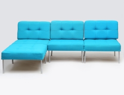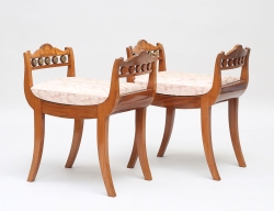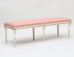 träskuren äggstavsdekor, bladhölstrade ben, fast stoppad sits, bemålad med förgyllda detaljer, höjd 43, bredd 133x46 (omarbetad, senare ben)