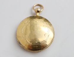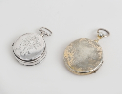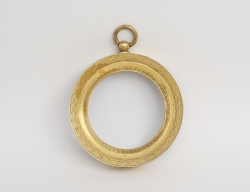 empir tidigt 1800-tal, savonett, sköldformad, rikt graverad dekor av bla. två olika troliga släktvapen sannolikt släkten Grills, invändigt litet spindelur, balansen fungerar, bruttovikt 15,14 gram, 4,2x3