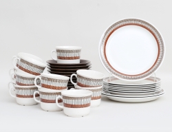 6 buljongkoppar med lock och fat, helblond, 1:a sortering, modellnummer 1228, 1142-1228, 764-1228, höjd 6,5