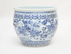 Qianlong 1736-1795, blåvit underglasyrdekor av flodlandskap, höjd 13, bredd 20