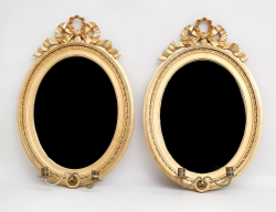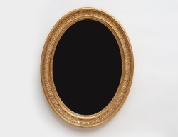 träskuren delvis genombruten dekor, girlanger och urnor, förgylld med bladguld och slagmetall, senare delat glas, 88x35 (smärre ytslitage)