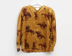 scarf siden, "Achtung Gras" 1990 by Gruener Januia, AG/Glarus/Switzerland, printed by hand at Giovanni Bianchi Como/Italy, 115x115 (smärre fläckar på en orange rundel)