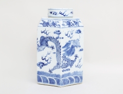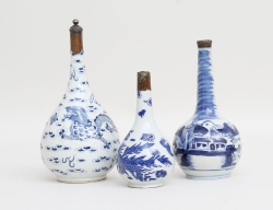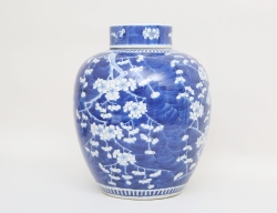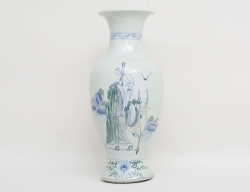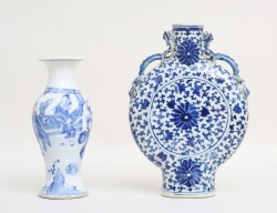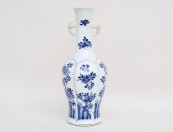 Kang-Hsi 1662-1722, blåvit underglasyrdekor, oglaserade hänklar, bottenmärke, etikettmärkt Wayland Wieslander, höjd 27 (mynningen med retuscherad lagning, fotring med naggar och glasyrslitage)