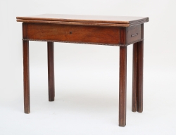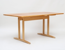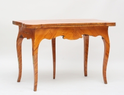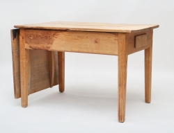tidigt 1800-tal, furu, ena kortsidan med klaff, andra med ursprunglig lång låda, raka nedåt avsmalnande ben med kannelyr, höjd 77, bredd 75, längd 114 (179)