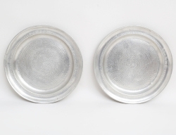 takarmaturer 1 par modell T771/360M, vitlackerad metall, mässing, raster i kromad plast, etikettmärkta, höjd 20, diameter 36 (smärre fläckar)