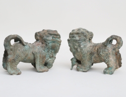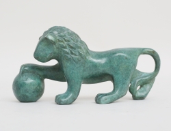 skulptur lejon med klot (Riksdagslejonet), grönpatinerad brons, signerad, höjd 6, bredd 12