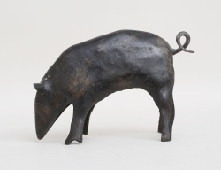 skulptur i form av liggande får, patinerad brons, signerad, höjd 8, bredd 13