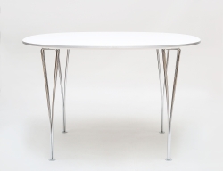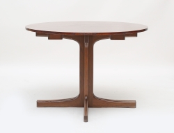 matbord för JOC Vetlanda 1960-tal, 2 iläggsskivor, höjd 72, diameter 105, total länge (225) (smärre slitage på benställningen)