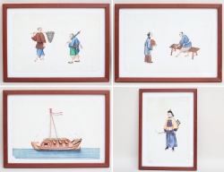 Kina 1800-tal eller äldre, senare ram och glas, 26x17, rammått 31x23 (papper med skador)