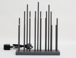 takarmatur 1960/70-tal, Westal Bankeryd, stomme i mässing, 15 ljusarmar med kupor i röktonat glas, etikettmärkt, höjd 95, diameter ca. 75