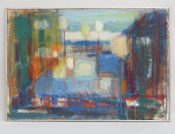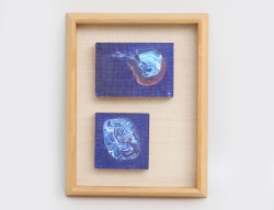 oljemålning på duk, uppklistrad på träklossar, så kallad diptyk - samramade, monogramsignerad, 8,5x12, 8,5x8,5, rammått 29x22, historik: köpt ca. 1965 av konstnären Bengt Olson Kristinehamn