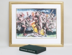 färglitografi 104/330, "Dansande barn" (i folkdräkter från Estland), signerad, bildmått 36x49, rammått 54x68