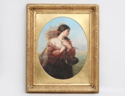 oljemålning på duk, porträtt av ung kvinna, signerad St. Cere...1905, 51x45, rammått 65x56