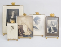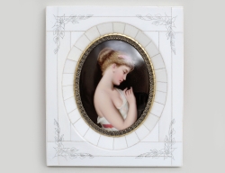 oval porslinsmålning, troligen Tyskland, etikettmärkt E&G PLM, ram i ben och mässing, 8,5x6,5, rammått 14x12