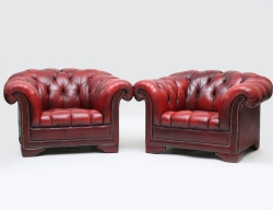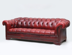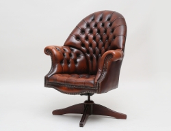 stoppad djuphäftad klädsel i brunt skinn, pärlspik, snurrbar fyrdelad träfot med kannelerad dekor, höjd 104, bredd 80 (smärre bruksslitage)