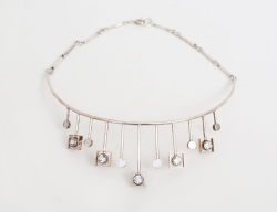 halssmycke sterlingsilver, Finland 1974, oregelbundna kubformationer med infattade stenar, kedja i silver medföljer, höjd 12,5