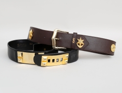 bälte brunt skinn, förgyllda detaljer, märkt Yves Saint Laurent, Croute de Couir, längd 91, Elisa Paris bälte, svart skinn med kraftiga förgyllda detaljer, längd 92 (bruksslitage) (2)