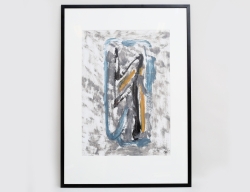 oljemålning på duk, komposition i blått, signerad, 55x46