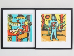 färglitografier diptyk 146/380, "I evigheten" , "Kärlekslabyrint", signerad, bildmått 31x27, rammått 47x42 (2)
